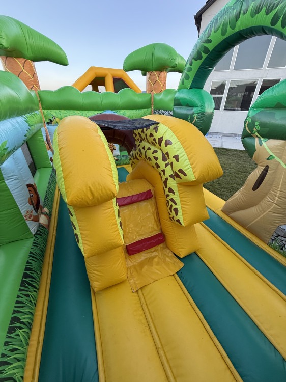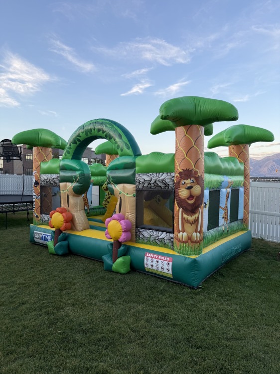 - OCCUPANCY: A maximum of 5-6 kids of equal size at one time for bounce houses, and 1 person at a time for slides is what most inflatable manufacturers recommend.